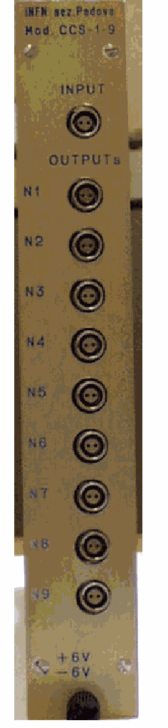 This NIM module has nine high speed driver and differential receiver. The scheme for twisted pair is adapted and the gain of module is 1.0. The figure 1 shows a typical output signal.
